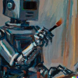 Figure 1: Image generated using DALL-E 2 from the prompt "oil painting of a robot painter" | Source: FCAT Research