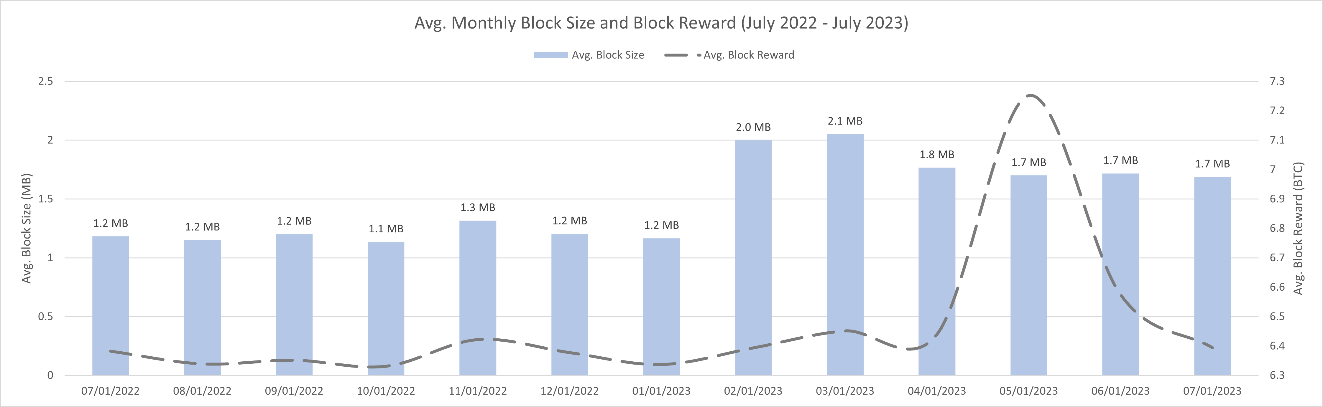 Figure 3: Avg. Monthly Block Size and Block Reward