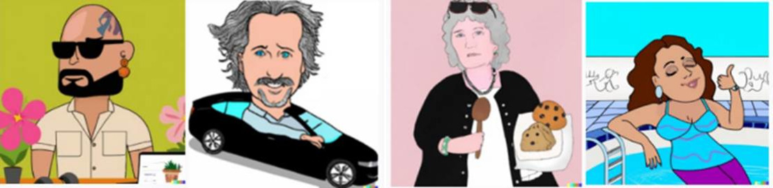 Figure 3: Four DALL-E 2 images of people with diversified income sources that were used in an internal FCAT research report in August | Source: FCAT Research
